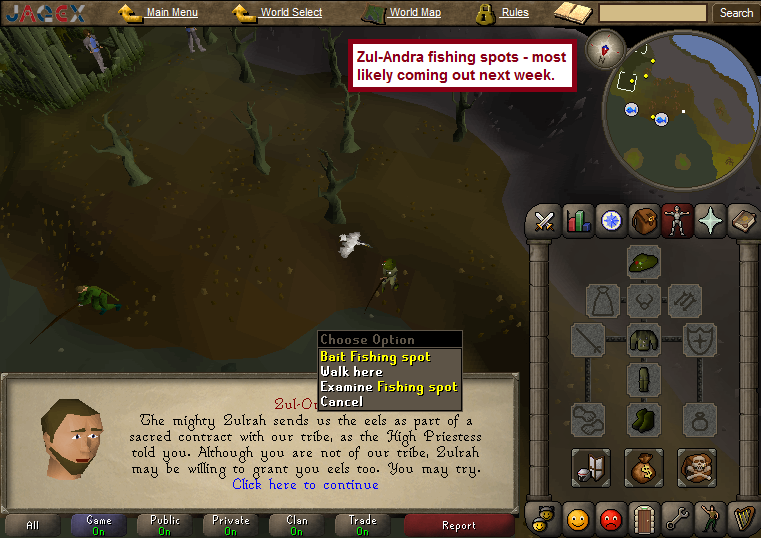 Add a fishing spot here so when im teaching newbies how to zulrah I dont xp waste. The residents of Zul-Andra have opened up a little more about their local delicacies sacred eels. Fishing spot sacred eel It looks like somethings moving under here.